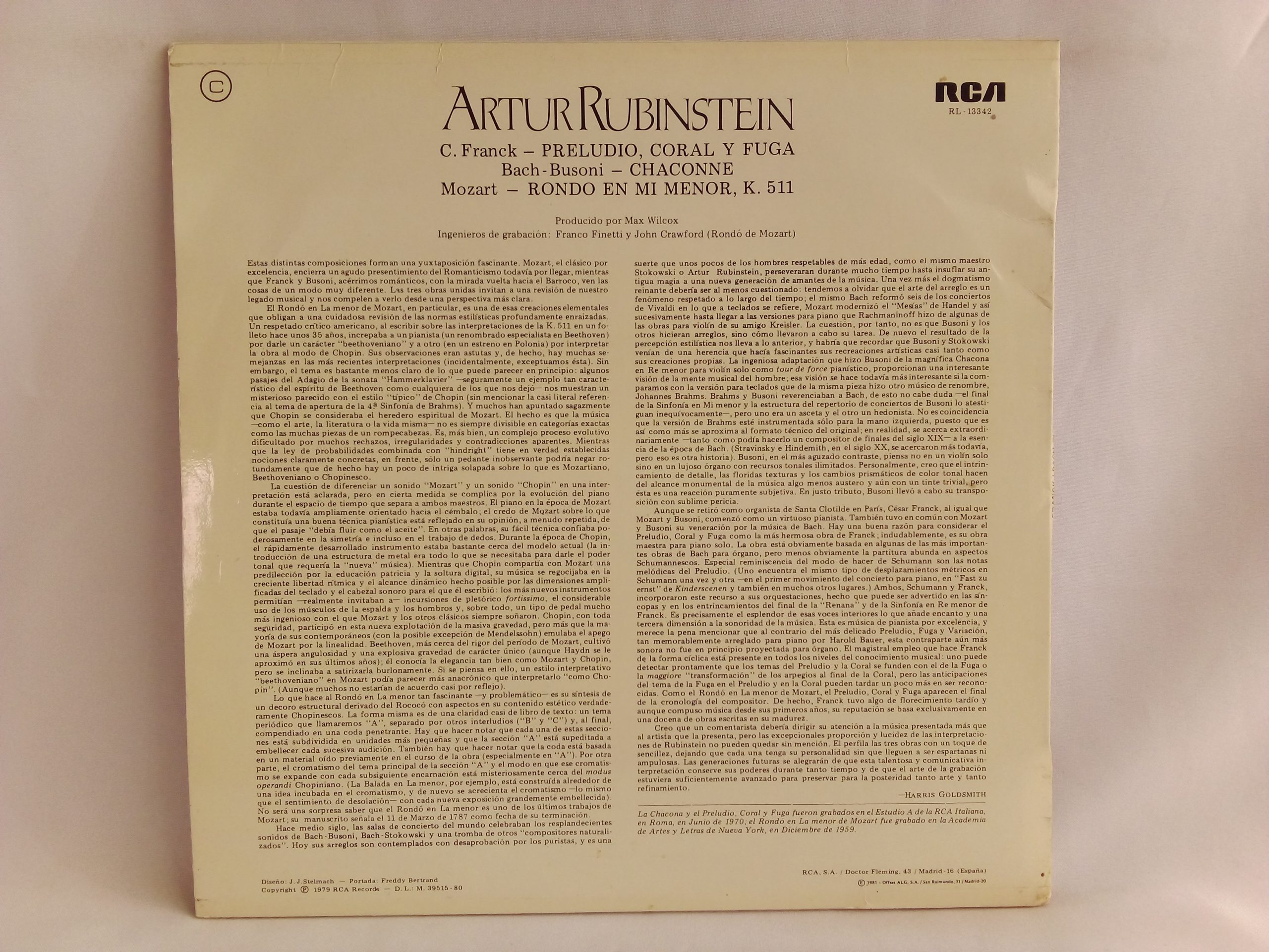 Arthur Rubinstein, Franck / Bach – Busoni / Mozart: Prélude, Chorale And Fugue / Chaconne / Rondo