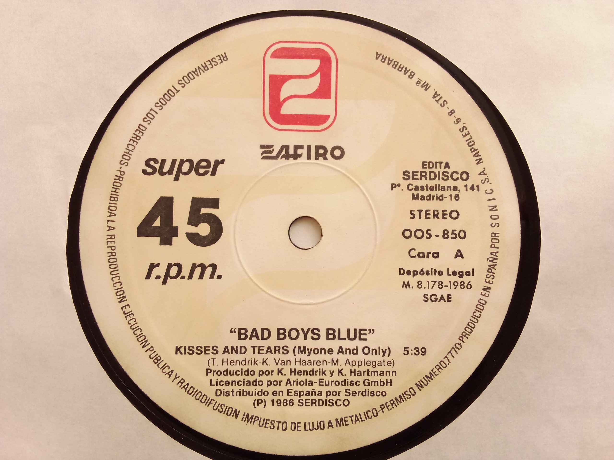 Registro: Zafiro – OOS-850 / 12″, 45 RPM / 1986, España