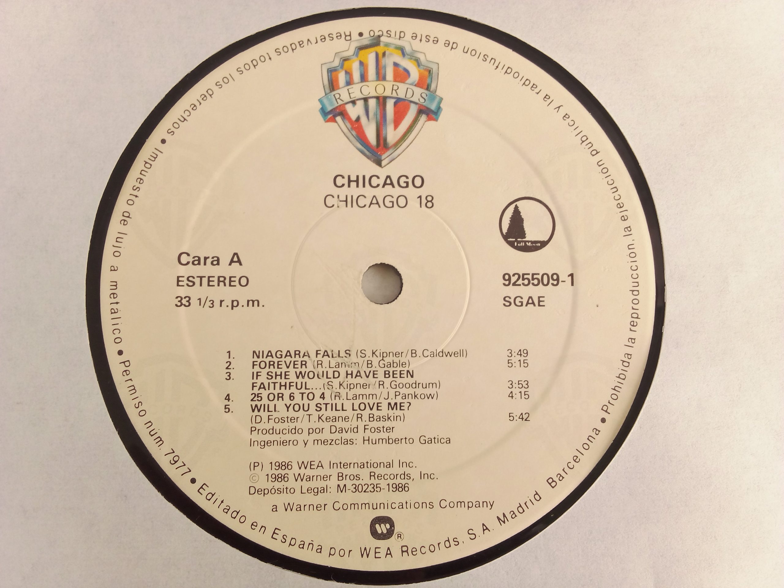 Registro: Warner Bros. Records – 9 25509-1, Warner Bros. Records – 1-25509 / 1986, España