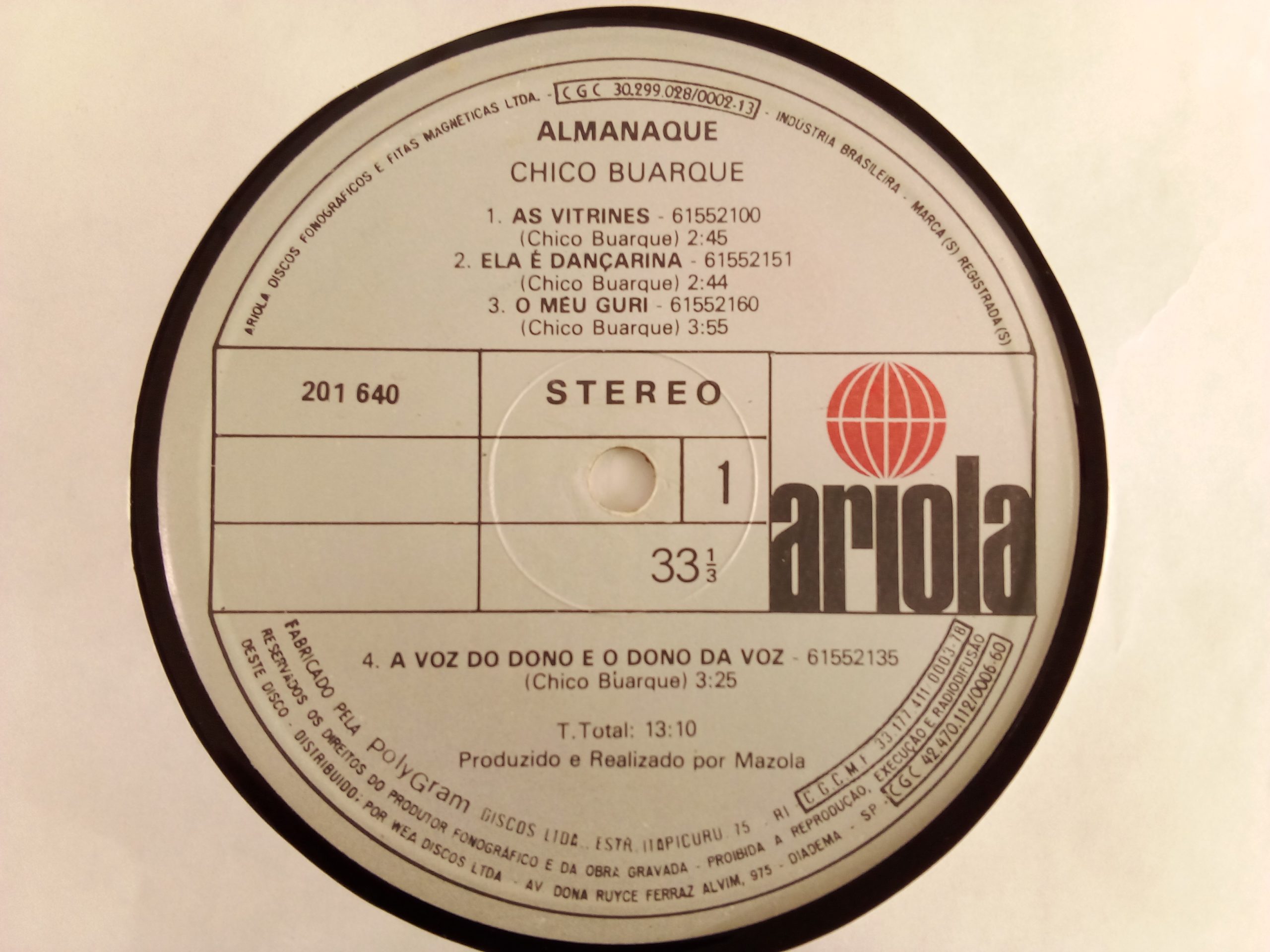 Registro: Ariola – 201640, Ariola – 201 640 / 1981, Brasil