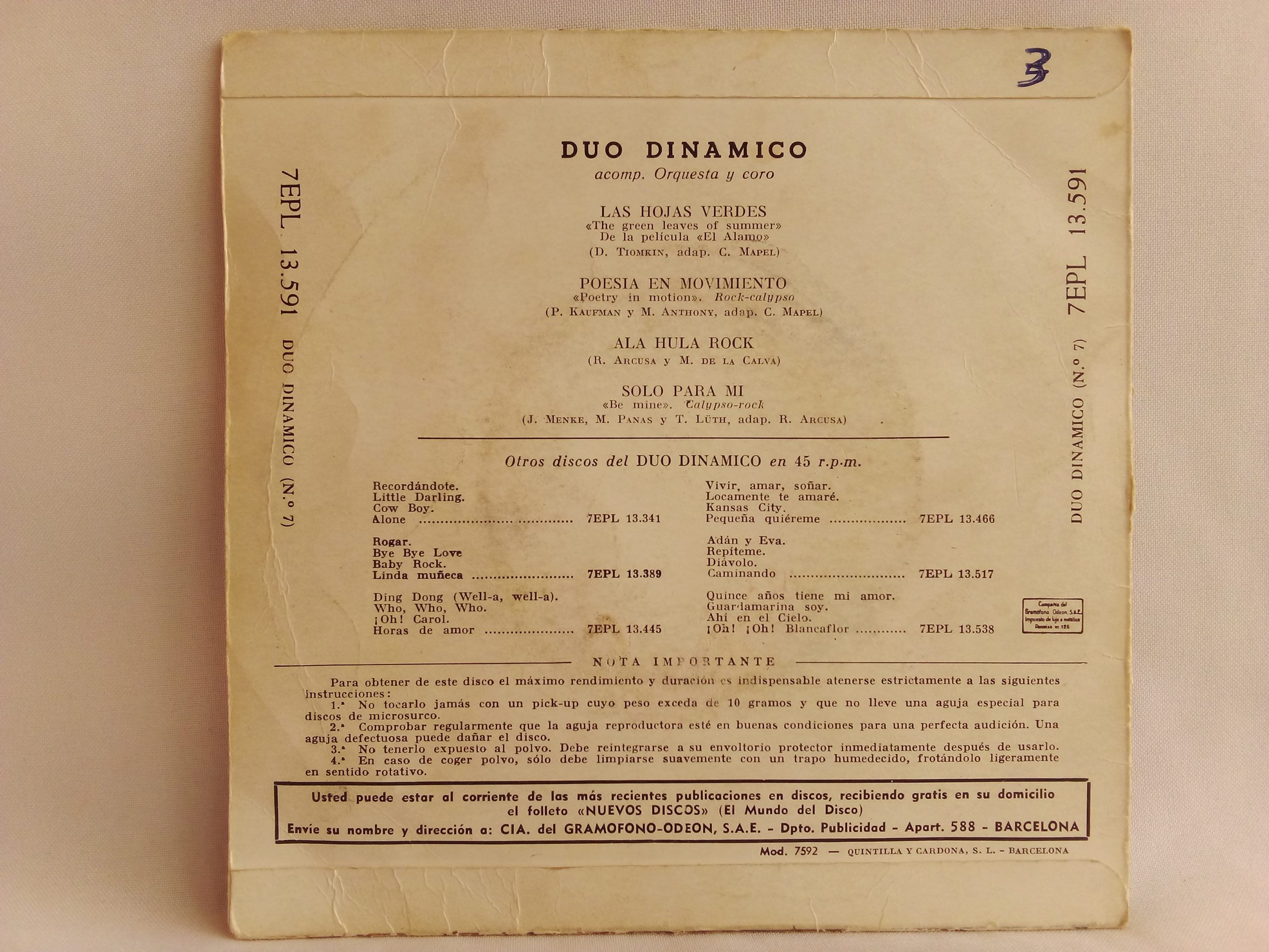 Registro: La Voz De Su Amo – 7 EPL 13.591 / 1961 España | 7″, 45 RPM