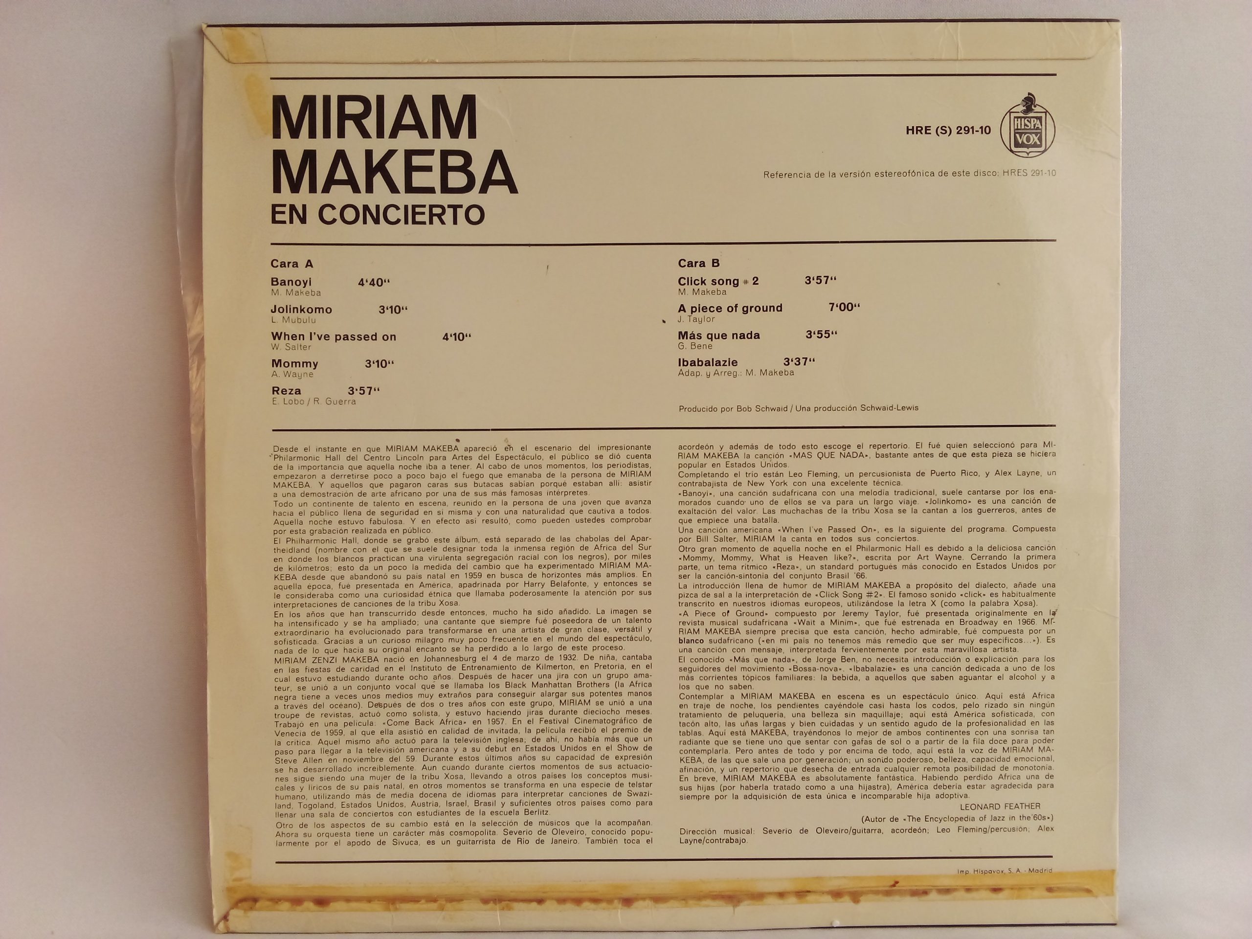 Registro: Reprise Records – HRE 291-10 / 1968, España |Directo