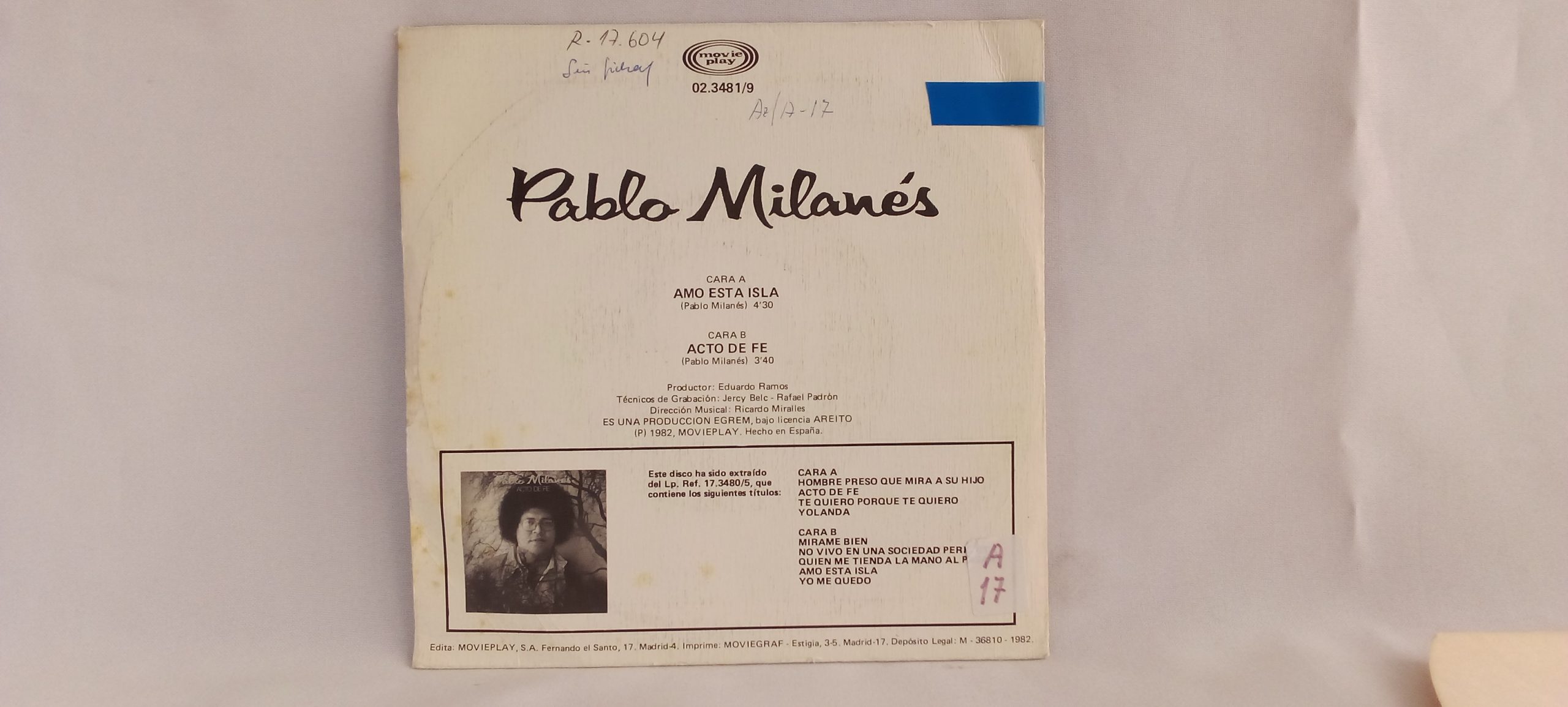 Registro: Movieplay – 02.3481/9 / 1982 España | 7″, 45 RPM, Single | PROMO