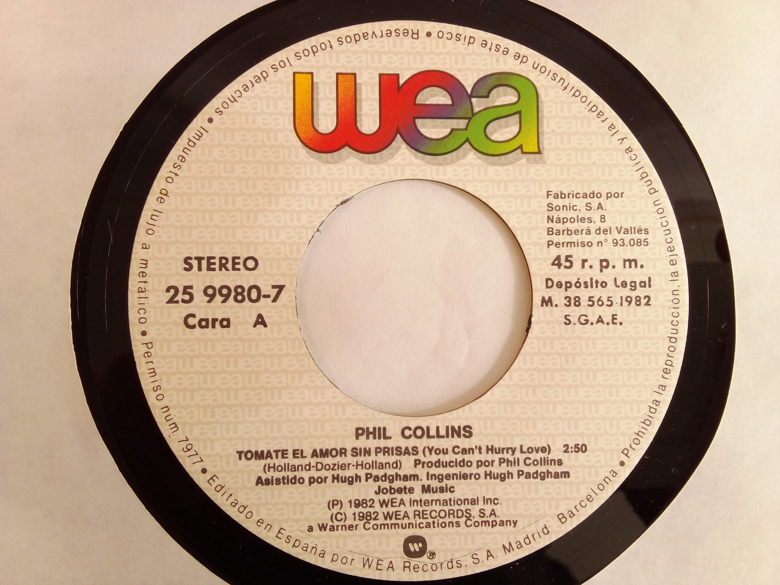 Registro: WEA – 25 9980-7 / 1982 España | 7″, 45 RPM
