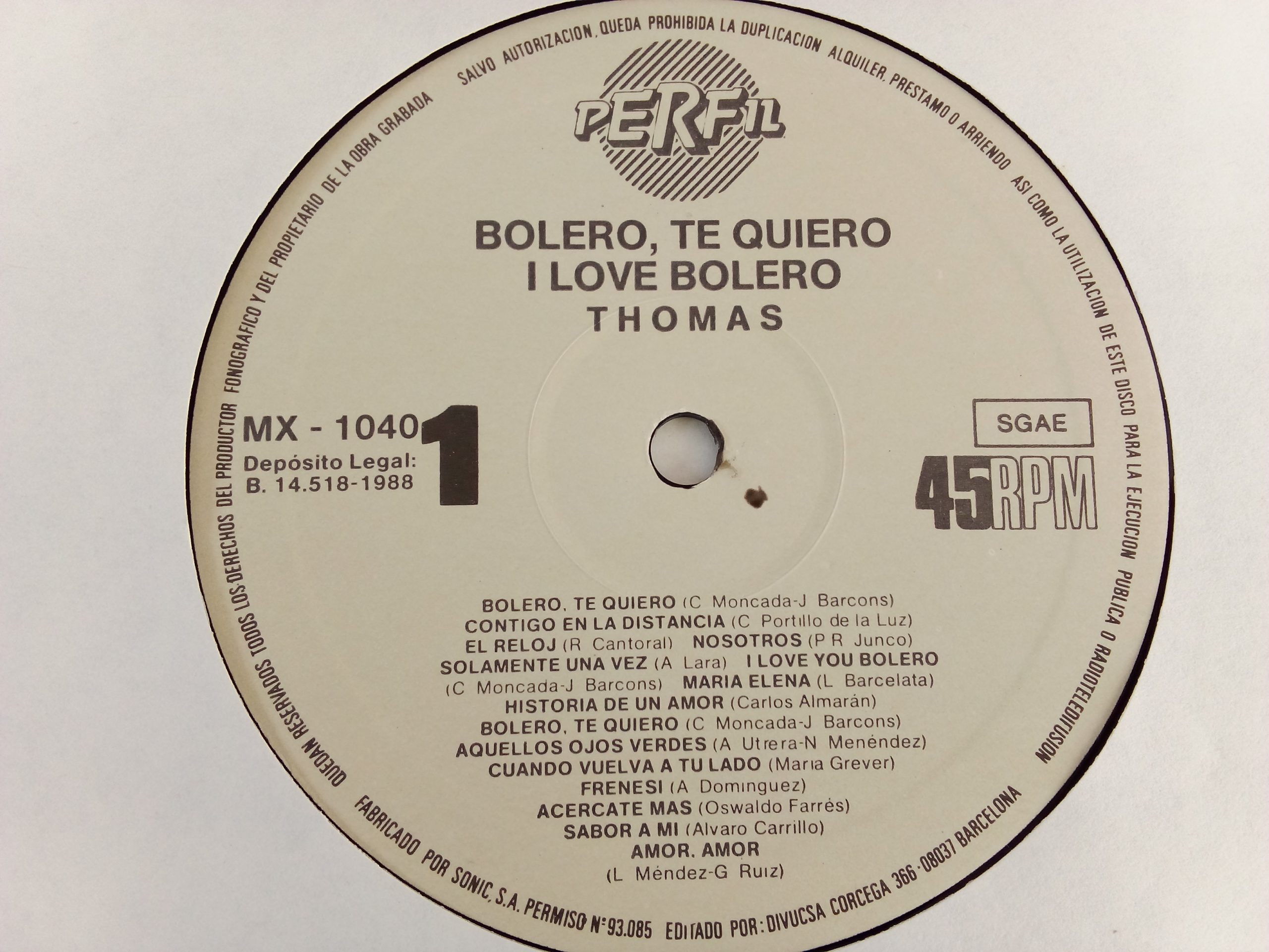 Registro: Perfil – MX 1040, Maxi-Single,12″, 45 RPM / 1988, España